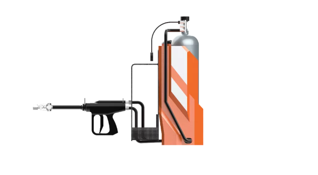 第三層保障:壓力表佩戴在操作者胸前,并附帶低壓報警裝置,當(dāng)氣瓶壓力低于5.5mpa時報警器發(fā)出尖銳的警報聲響,提醒操作者氣瓶壓力不足,及時撤離現(xiàn)場。