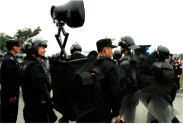 背負式聲波驅(qū)散器是包含獨立電源、攻放、揚聲器、話筒等的獨立擴音系統(tǒng),采用蓄電池直流供電,DC-DC轉(zhuǎn)換,選用YH29-2M戶外防水揚聲器,強指向、高聲壓、高清晰、耐沖擊、傳聲距離遠、可達1.5KM