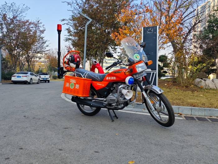 消防巡邏摩托車是在宗申摩托車的基礎上改裝而成,能夠廣泛的應用于森林、城市公路、工廠、學校、社區(qū)、醫(yī)院等場所,巡邏并可攜帶滅火裝備能迅速的將火災撲滅在初期。